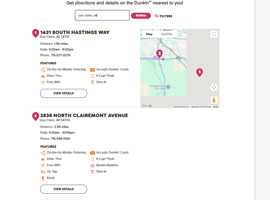 TMart Operations is a locally owned and operated Dunkin' and Baskin-Robbins franchise that focuses on providing outstanding guest experiences. Our Dunkin' locations provide a variety of signature drinks, coffee, espresso, breakfast sandwiches and more! Our Baskin-Robbins locations provide a classic ice-cream parlor experience, complete with scoops, sundaes, cones, novelties and custom ice cream cakes. All Big Deals certificates can be used at any of our Eau Claire and Menominee locations. Not valid on online, delivery or mobile orders.